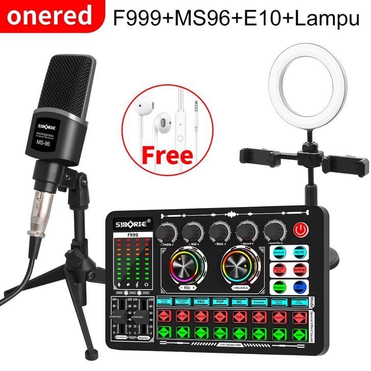 Onered F999+MS96+E10+Ring light SET Soundcard Headset Ring light SET Satu Siap
