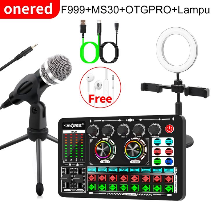 Onered【Free headset】F999+MS30+OTG+Ring light paket lengkap soundcard headset mic Ring light 5 in 1 full set