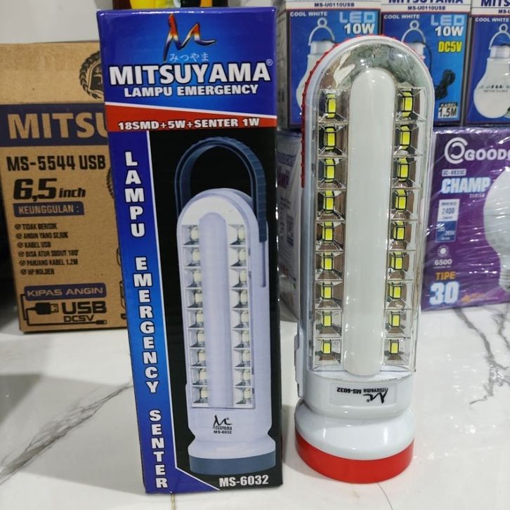 PROMO MITSUYAMA LAMPU EMERGENCY/SENTER EMERGENCY MS6032/MS6033 BISA CHARGE ATAU PAKAI BATERAI AA egegc