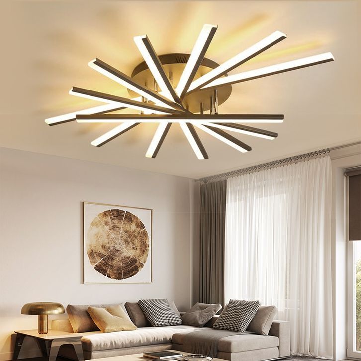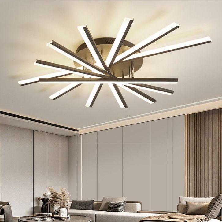 Lampu Plafon R Tamu Minimalis Modern Remote 3Warna Hitam 110cm LED Lampu Hias Ceiling