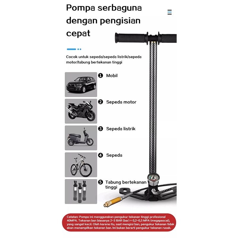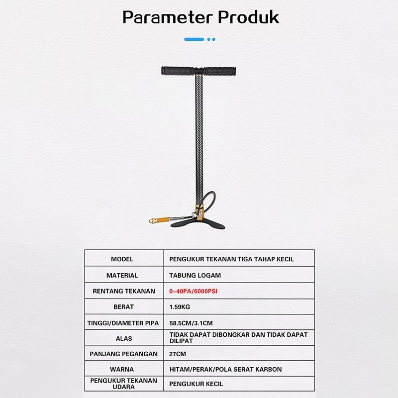 6000psi/40MPA, Barometer 160 PSI, Pompa Angin Kaki