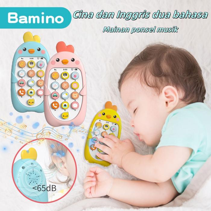 Bambino 6Bulan+ Mainan Ponsel Bayi Mainan Telepon Blue Bilingual Edukasi Bayi Dangen Musik Dan Lampu Mainan Stimulasi Pi