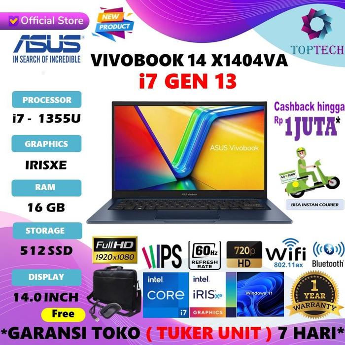 ASUS VIVOBOOK 14 X1404VA CORE I7 1355U 16GB 1TBSSD W11 14" FHD IPS - NON BUNDLING, 8GB 256SSD