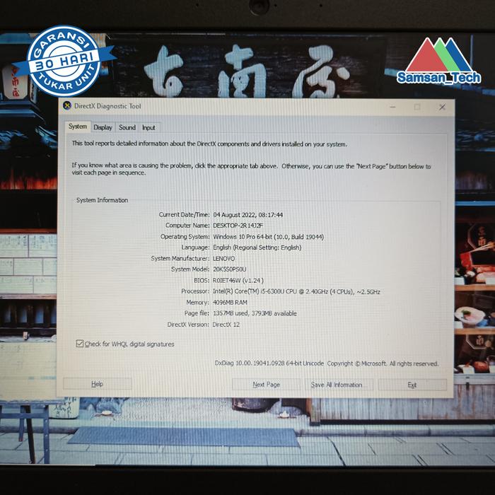 LENOVO THINKPAD X270 INTEL CORE I5 GEN7 RAM 8GB SSD 256GB MULUSSS - X250 I5 GEN5, RAM 4/128GB SSD