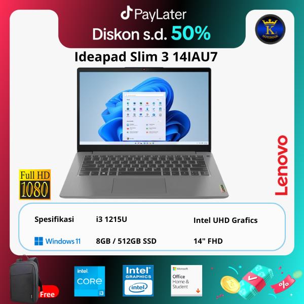 LAPTOP LENOVO IDEAPAD SLIM 3 14IAU7 I3 1215U 8GB 512GB W11+OHS 14"FHD - NON BUNDLING, GREY | 8/256