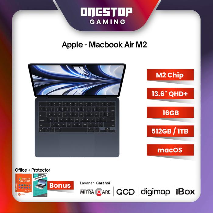 APPLE MACBOOK AIR M2 2022 13 INCH CTO 8 CORE CPU RAM 16GB 256GB / 512GB / 1TB SSD - MIDNIGHT 512GB, APPLE
