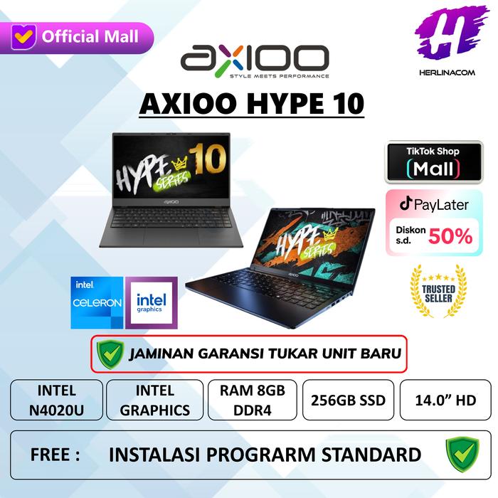 LAPTOP AXIOO HYPE 10 INTEL N4020 RAM 8GB 256GB SSD WINDOWS ORI 14.0 - NON PAKET, DOS