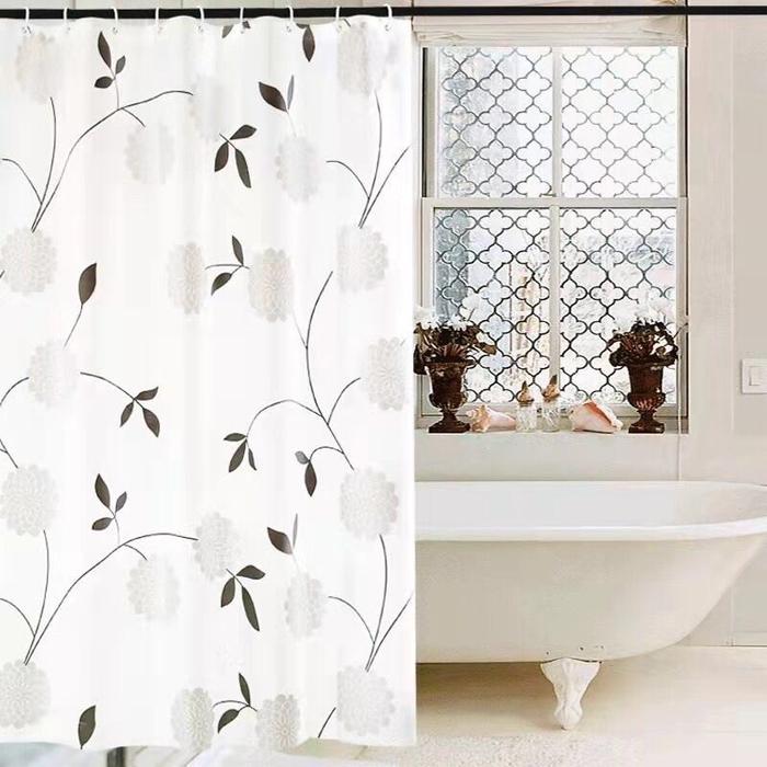 Tirai Kamar Mandi Anti Air Bahan Peva Dilengkapi Pengait Shower Curtia - One Tree
