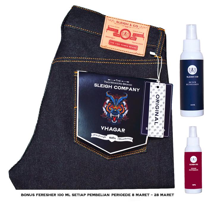 Sleigh Co - Vhagar 16Oz Pants Denim Selvedge Accent - Extra Black Indigo - 27, 16 Oz Kantong Merah
