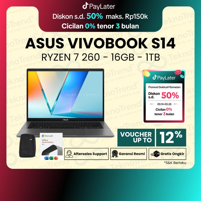 LAPTOP ASUS VIVOBOOK S14 M3407HA RYZEN 7 260 16GB 1TB 14" - COOL SILVER, NON BUNDLING