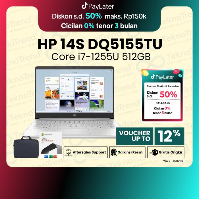 LAPTOP HP 14S DQ5155TU I7-1255U SSD 8GB 512GB IRIS XE 14" FHD IPS W11 OHS - SILVER, 8GB