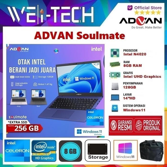 LAPTOP ADVAN SOULMATE N4020 8GB 128GB 14"HD WIN11 - BLACK 128GB, 4GB RAM