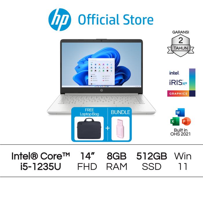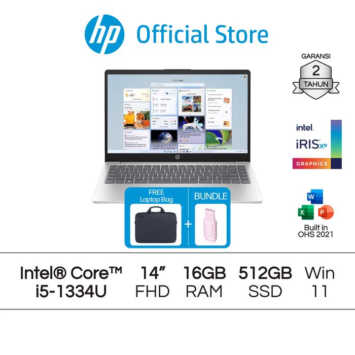 LAPTOP HP INTEL CORE I5 GEN 12 IRIS X 8GB / 16GB RAM 256GB / 512GB SSD SILVER WINDOWS 11 HOME 14 INCH GARANSI 2 TAHUN OFFICIAL - 16GB/512GB, SILVER