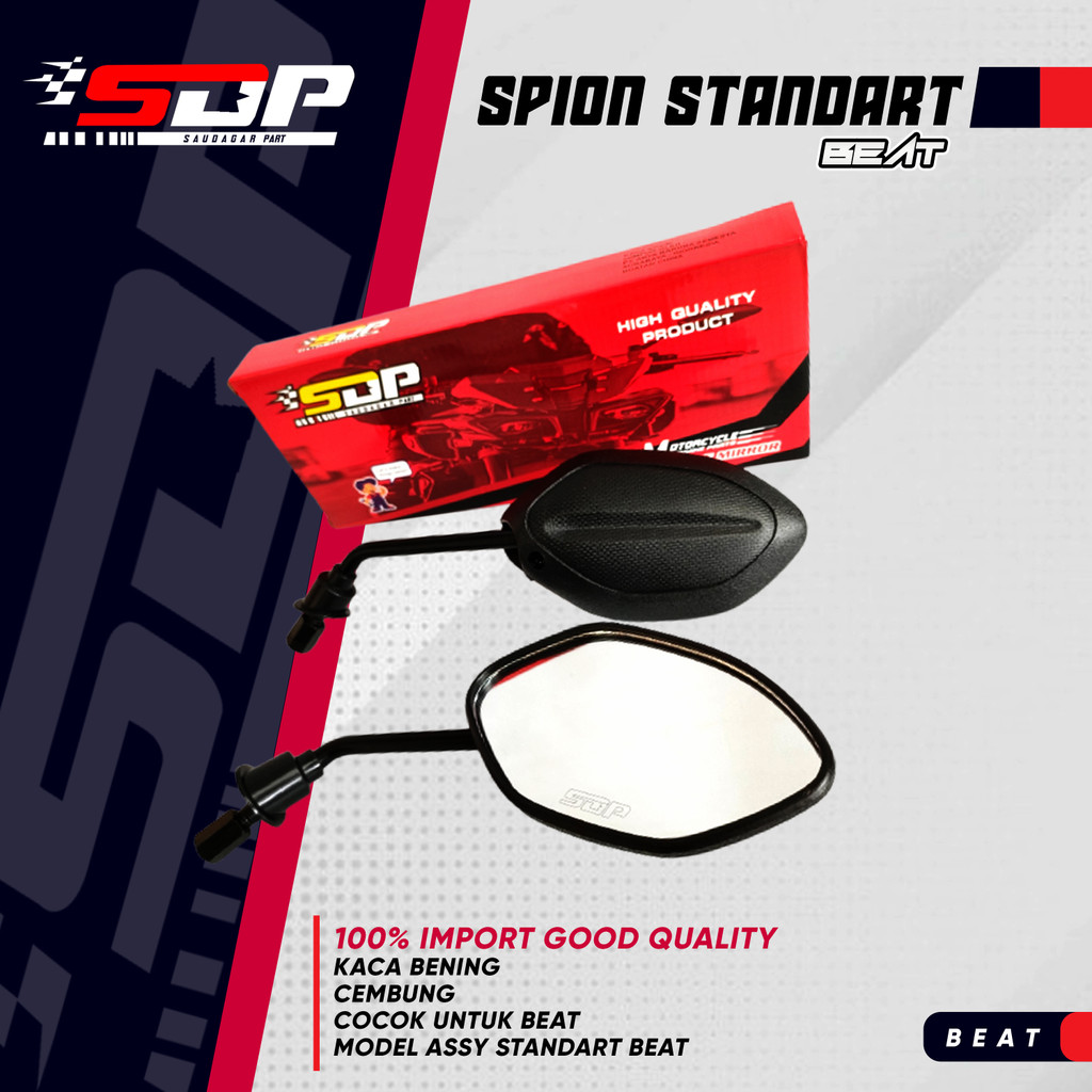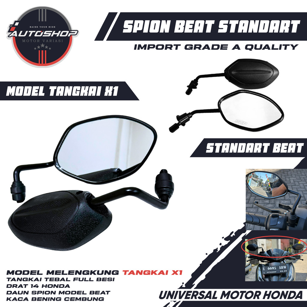 Spion Standar BEAT V2 – Tangkai X1 Melengkung, Drat 14, Ka Bening Cembung | Universal Honda & Yamaha
