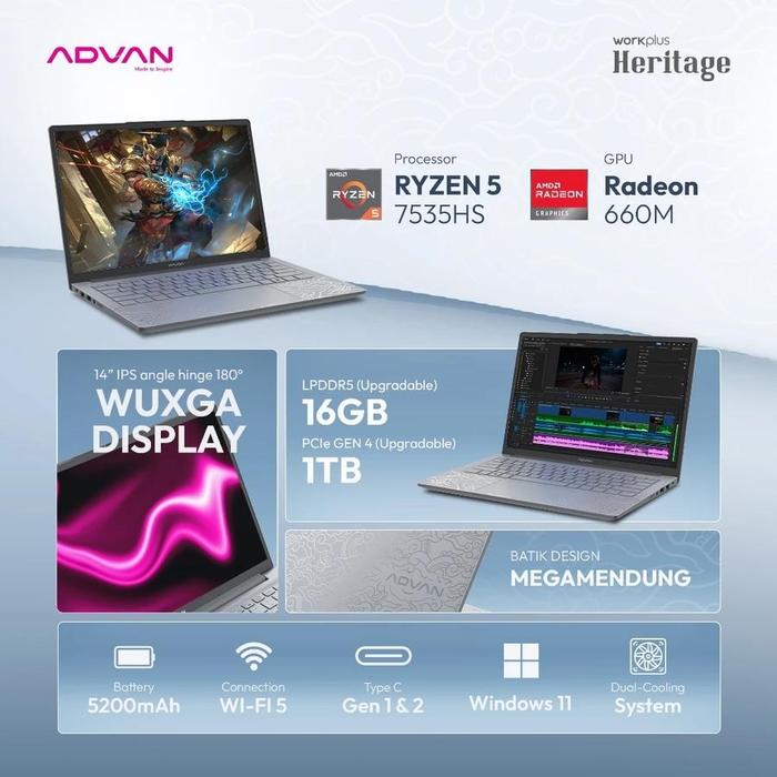 ADVAN WORKPLUS HERITAGE RYZEN 5 7535HS 8GB RADEON 660M W11 BATIK - 8GB RAM