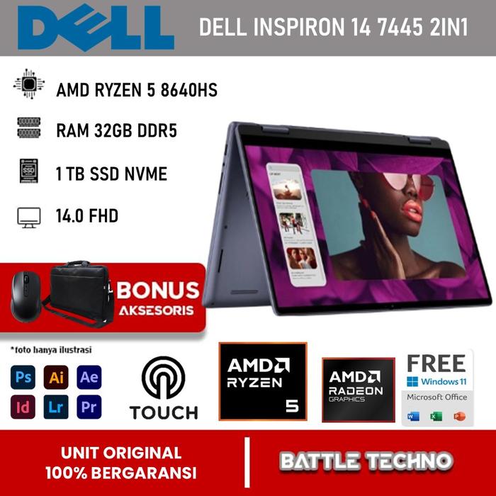 LAPTOP DELL INSPIRON 14 7445 2IN1 AMD RYZEN 5 8640HS RAM 32GB DDR5 1TB SSD 14.0 FHD TOUCH WIN 11 HOME - UNIT ORIGINAL, 8GB | 512GB SSD