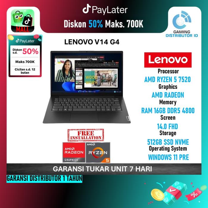 LENOVO V14 G4 RYZEN 5 7430 / 7520 16GB 512GB 14 INCH FHD W11 - UNIT ONLY, R5 7520 16/512