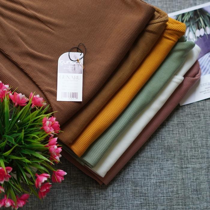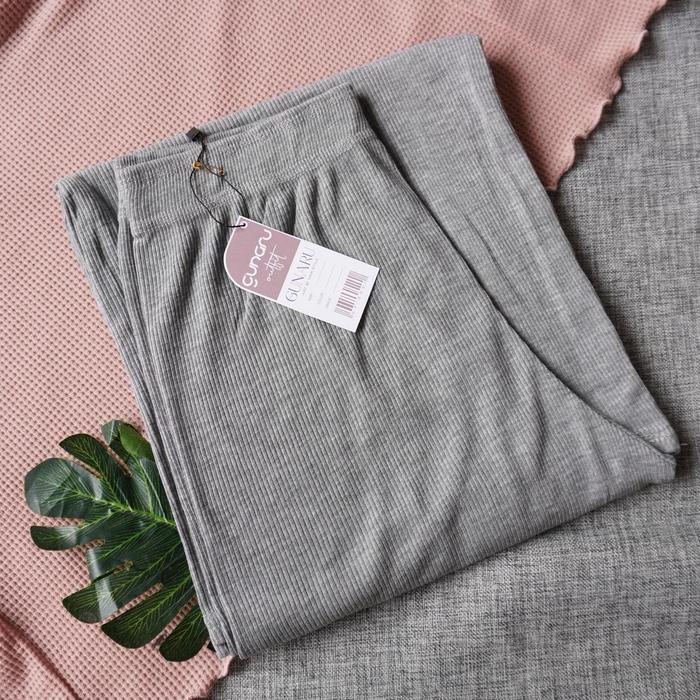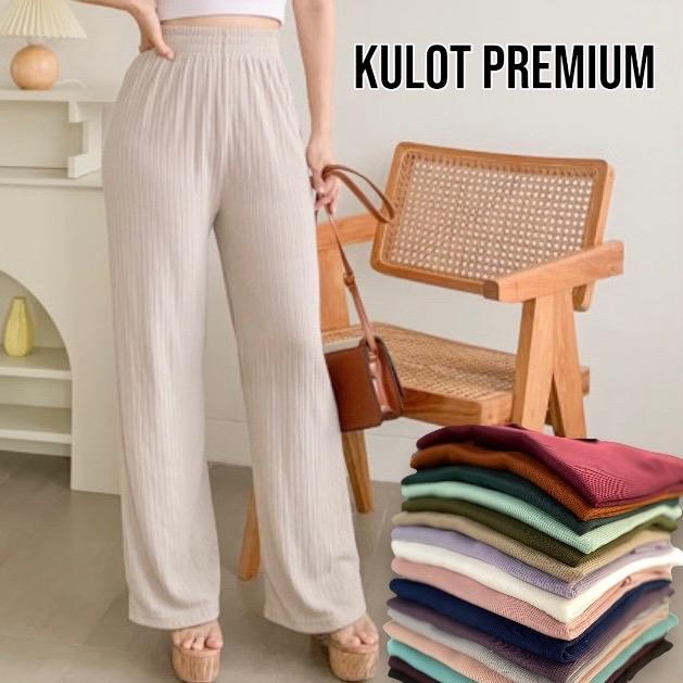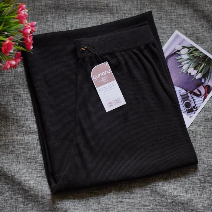 Celana Panjang Basic Kulot Wanita Pinggang Full Karet Rib - Hitam