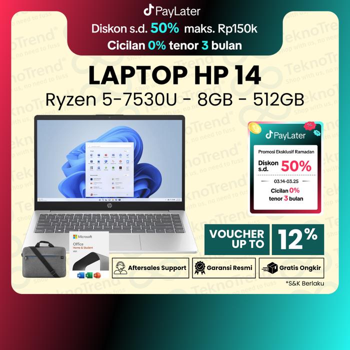 LAPTOP HP 14 EM0018AU EM0019AU RYZEN 5 7530U 8GB 512GB 14" FHD - SILVER