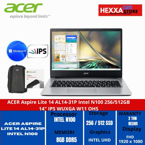 ACER ASPIRE LITE 14 AL14-31P INTEL N100 512GB 14" IPS WUXGA W11 OHS - SSD 256GB, 8 GB