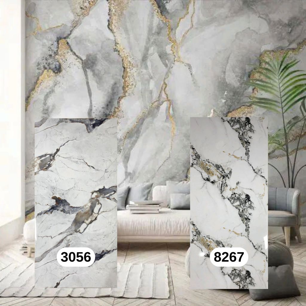 MARMER PANEL PVC DEKORASI DINDING MOTIF CORAK kuning mengkilap MARBLE UPVC COLOURS GLOSSY MARMER 290CM DAN 244CM