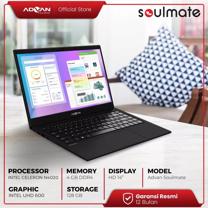 LAPTOP ADVAN SOULMATE INTEL N4020 4GB 384GB WINDOWS - 4GB+128GB DOS