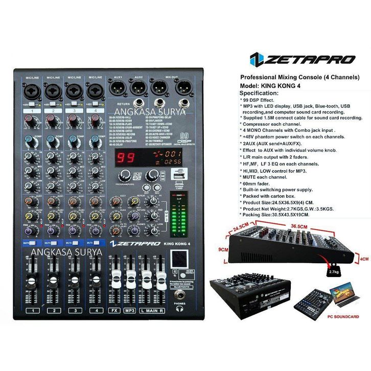[Star] Mixer Zetapro Kingkong 4 Original / Mixer 4Channel Zetapro Kingkong4 Ada Compressor Effect Reverb 99 Dsp