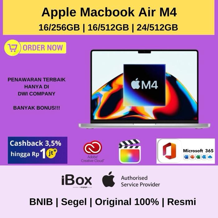 RESMI MACBOOK AIR M4 2025 16GB 24GB 256GB 512GB 13 15 INCH - 13" 16/256GB INTER, MIDNIGHT