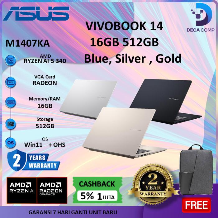 ASUS VIVOBBOK 14 M1407KA RYZEN AI 5 340 16GB 512GB 14.0 WUXGA 100 PERSEN SRGB W11+OHS - UNIT, 16GB 512GB