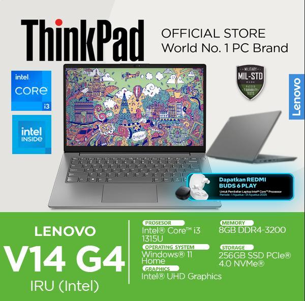 LENOVO V14 G4 IRU CORE I3 1315U 8GB 256GB SSD WINDOWS 11 14" FHD 2YR GREY LAPTOP MURAH - RAM 8GB, NORMAL BUNDLING