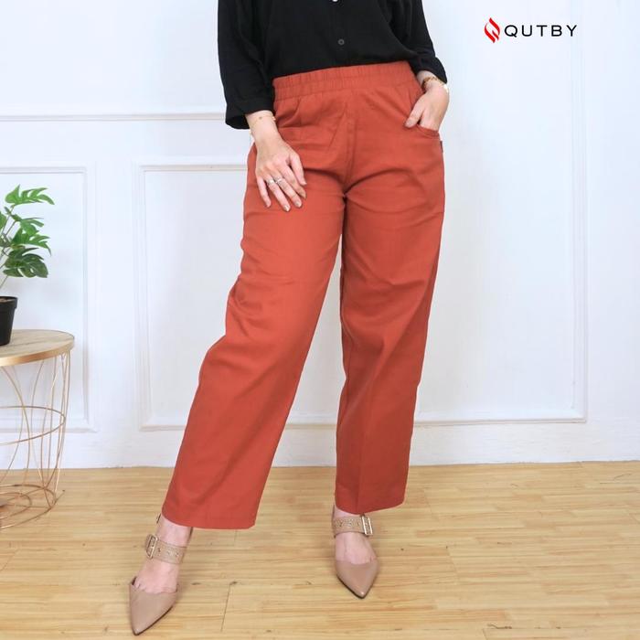 Qutby - Live Celana Korean Long Premium Bahan Katun Twill Premium Wanita Panjang Linen Kulot Dewasa Casual Hitam Cewek K