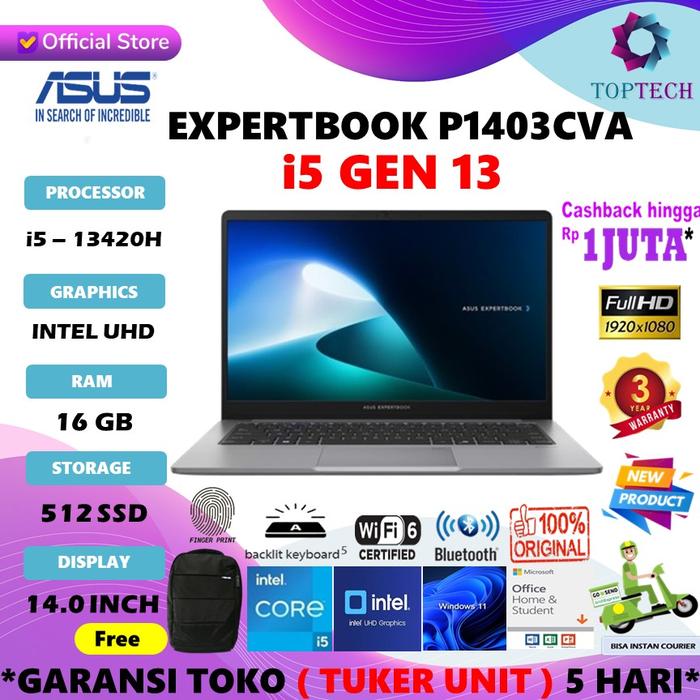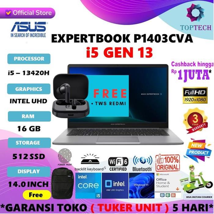 LAPTOP ASUS EXPERTBOOK P1403CVA I5 13420H 16GB 512GB 14.0FHD VIPS W11 OHS - NON BUNDLING, 8GB 512GB