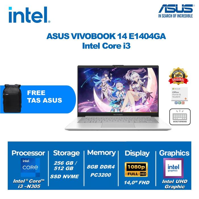 ASUS VIVOBOOK GO 14 E1404GA - I3 N305 8GB DDR5 512GB 14" FHD W11 & OHS - NON BUNDLE, 512 GB