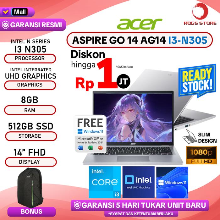 LAPTOP ACER ASPIRE LITE AL1 SLIM 14 INTEL CORE I3 GEN 12 8GB 512GB W11+OHS 14.0FHD - LAPTOP, I3-N355 256GB