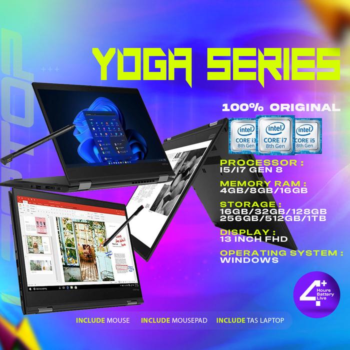 LAPTOP YOGA SERIES I5/I7 GEN 8 RAM 8GB-16GB SSD UP TO 512GB BEST GRADE - L13 YOGA GEN 2 I5 GEN 11, RAM 8GB SSD 128GB