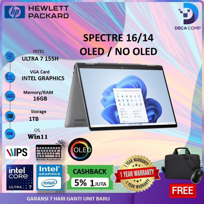 HP SPECTRE X360 16/14 2IN1 TOUCH ULTRA 7 155H 16GB/32GB 1TB W11 16.0 2.8K OLED 100 PERSEN SRGB - NON PAKET, 16" NO OLED TOUCH 16GB/1TB BLACK