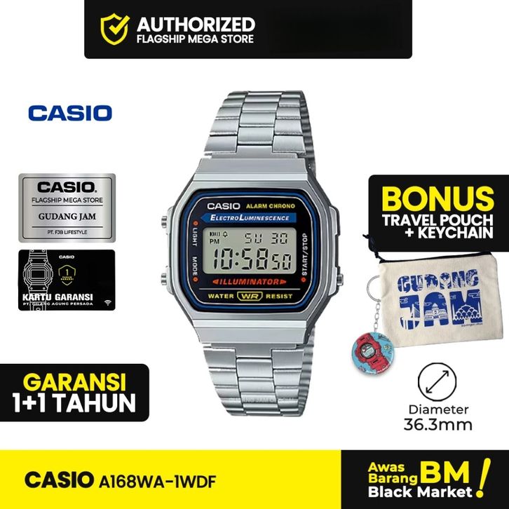 Jam Tangan Original Casio A168WA 1WDF Jam Tangan Pria dan Wanita Tahan Guncangan Garansi Resmi