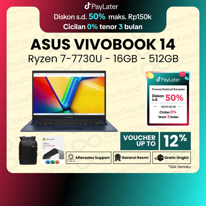 LAPTOP ASUS VIVOBOOK 14 M1405YA RYZEN 7 7730U 512GB SSD 16GB IPS WIN11 - BLACK, NON BUNDLING