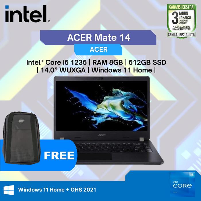 ACER MATE 14 I5 1235 16GB 512GB W11+OHS 14.0WUXGA IPS 2/2/0 BLK - NORMAL, 8GB
