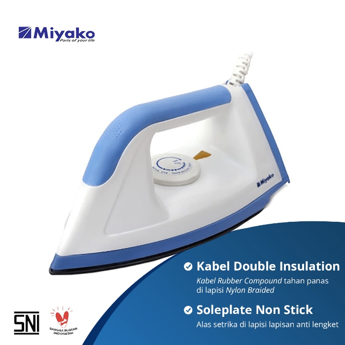 SETRIKA MIYAKO EI1008MBL GOSOKAN SETRIKA KERING ANTI LENGKET - 395 WATT - PUTIH BIRU