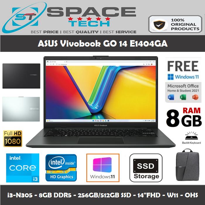 ASUS VIVOBOOK GO 14 E1404GA I3-N305 8GB 256/512GB SSD 14"FHD W11 OHS - BLACK-256GB, TANPA ANTIGORES