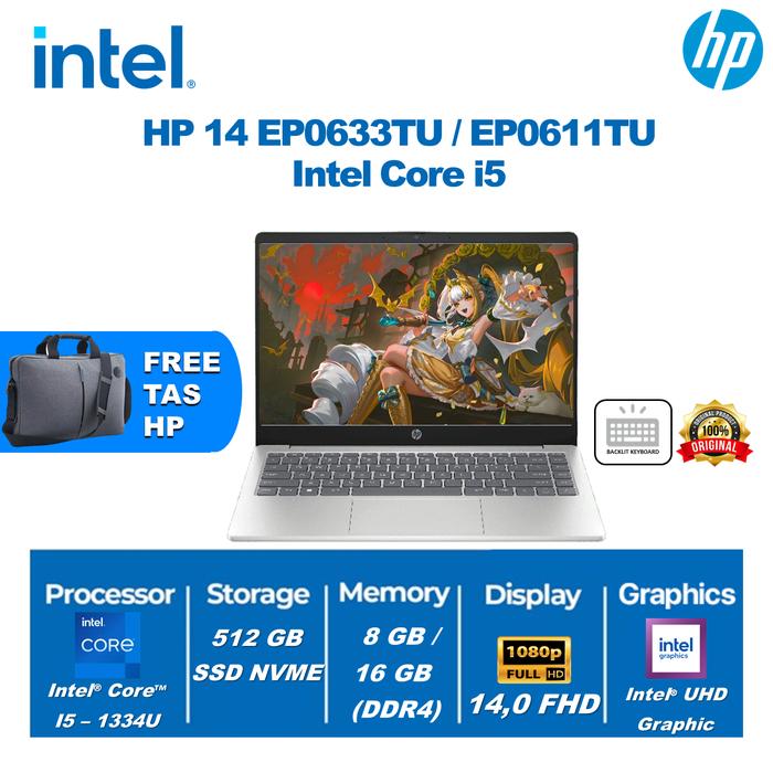 LAPTOP HP 14 (GEN 13) EP0633TU / EP0611TU - I5 1334U 16GB 512GB 14"FHD SSD W11+OHS - NON BUNDLING, 8GB