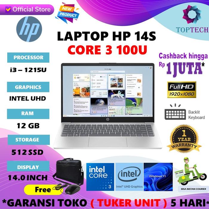 LAPTOP HP 14S CORE 3 100U 12GB 512GB 14.0FHD W11 I | NOT HP 14S CORE I3 - NON BUNDLING, 8GB 512GB