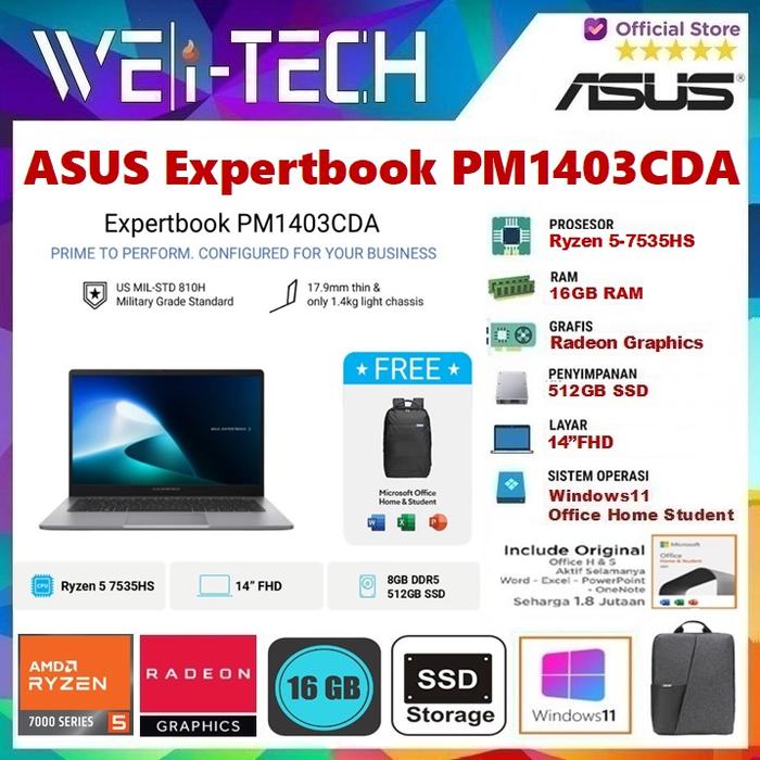 ASUS EXPERTBOOK PM1403CDA RYZEN 5 7535HS 8GB/16GB 512GB SSD 14"FHD W11 OHS - SILVER, 8GB RAM