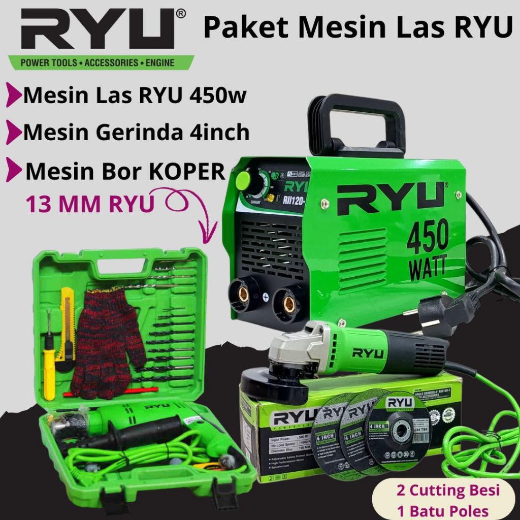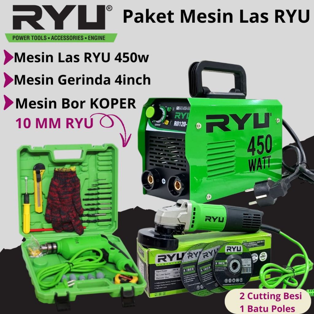 [Mall] PAKET LENGKAP RYU MESIN LAS 450 WATT 120A BOR KOPER GERINDA TANGAN 4 INCH MESIN TRAFO TRAVO LAS LISTRIK GURINDA
