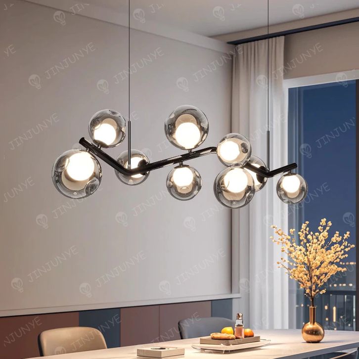 Lampu Gantung Minimalis Modern 9 Bola Kaca Abu-abu Lampu Hias Gantung Mini Bar R Tamu Pendant