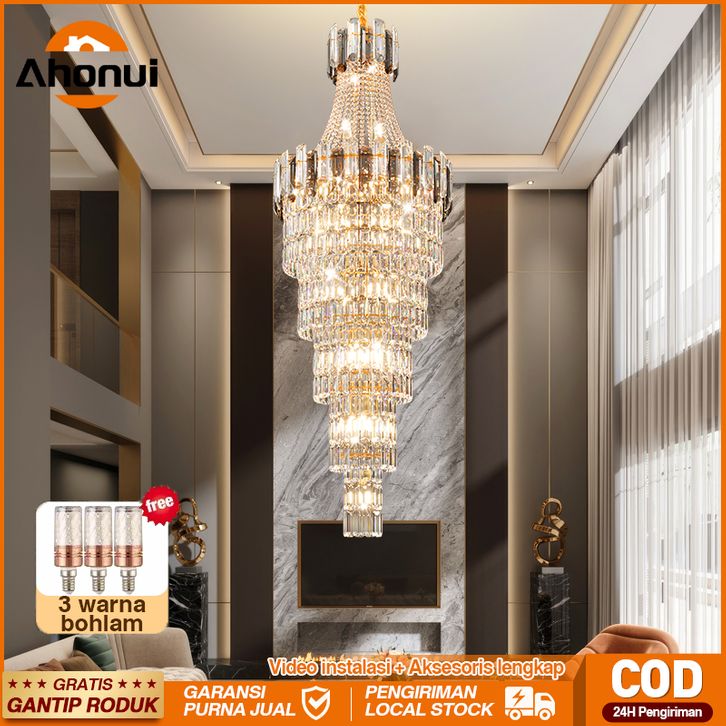 ⚡️Free Bola lampu&Perangkat keras + kristal K9⚡️Lampu Gantung Kristal Mewah 60170CM 3 Warna Ideal