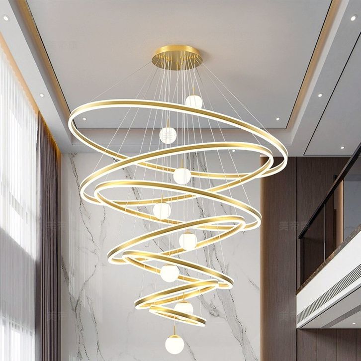 4METER Lampu Gantung Ring Modern Minimalis GOLD 5 Ring 120cm Remote Control Pendant Light