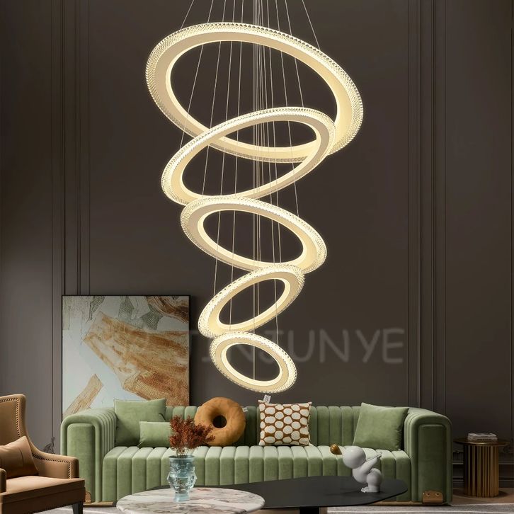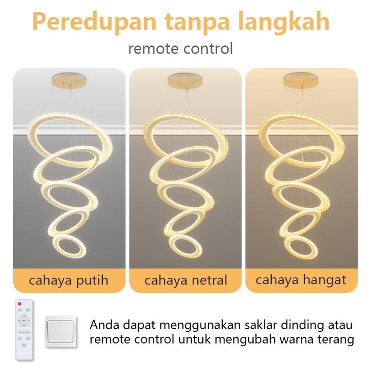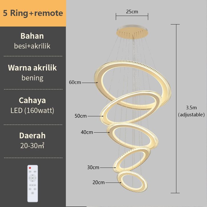 Lampu Gantung 5 RING Minimalis Remote 3 Warna LED Lampu Hias Gantung R Tamu R Makan