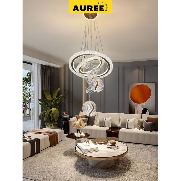 AUREE - Lampu Gantung Kristal LED 3 Warna Modern Minimalis Lampu Hias R Tamu Kamar Tidur